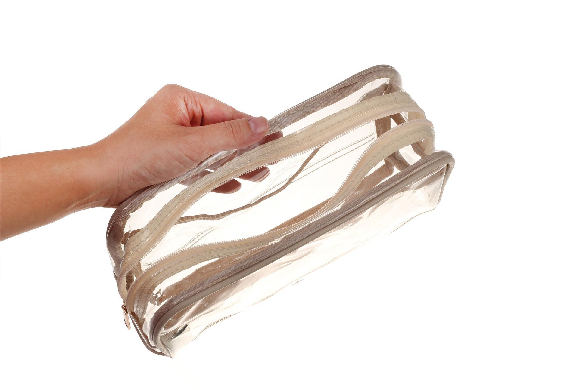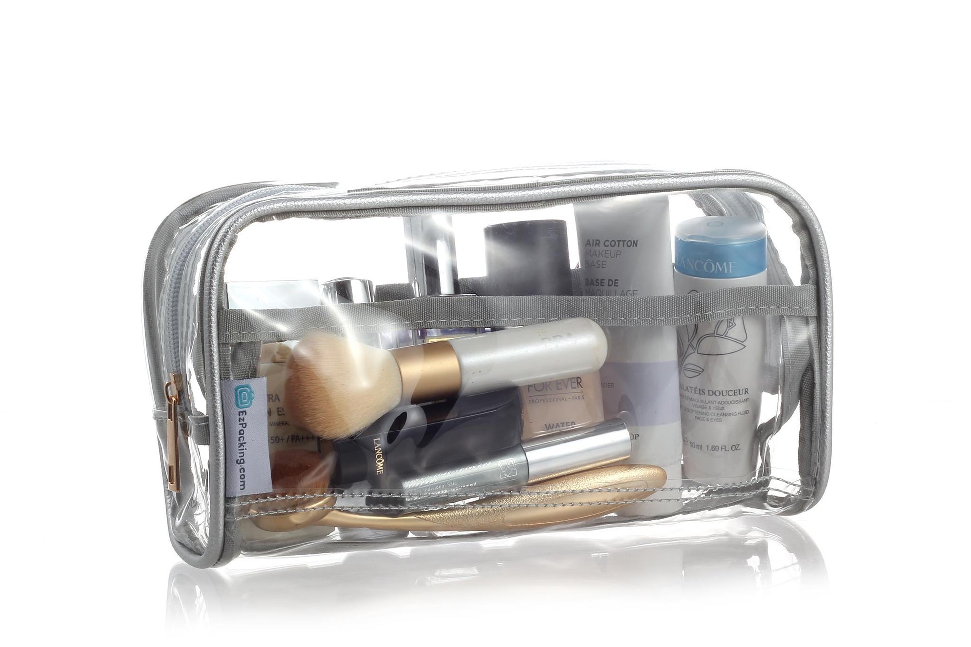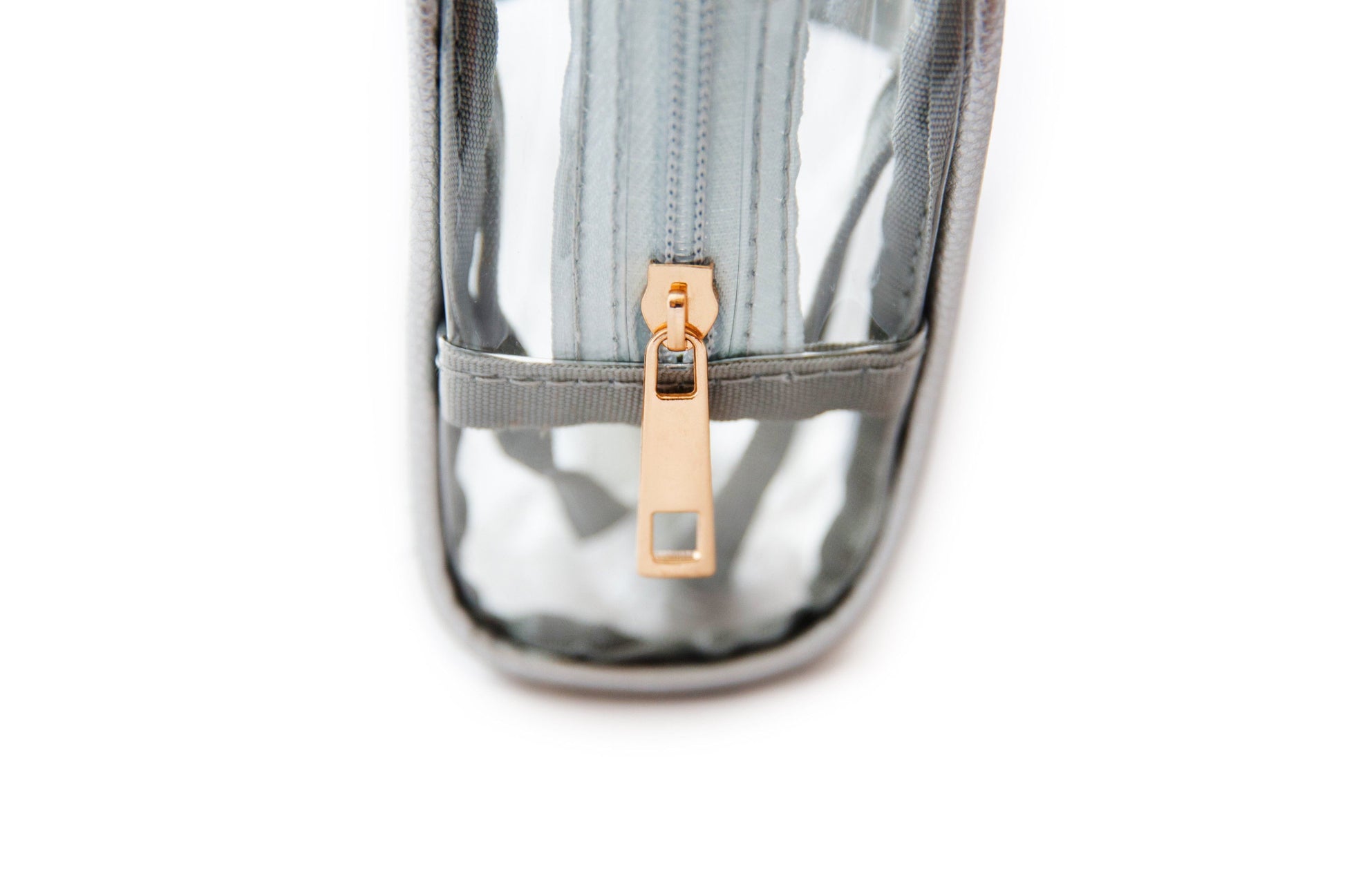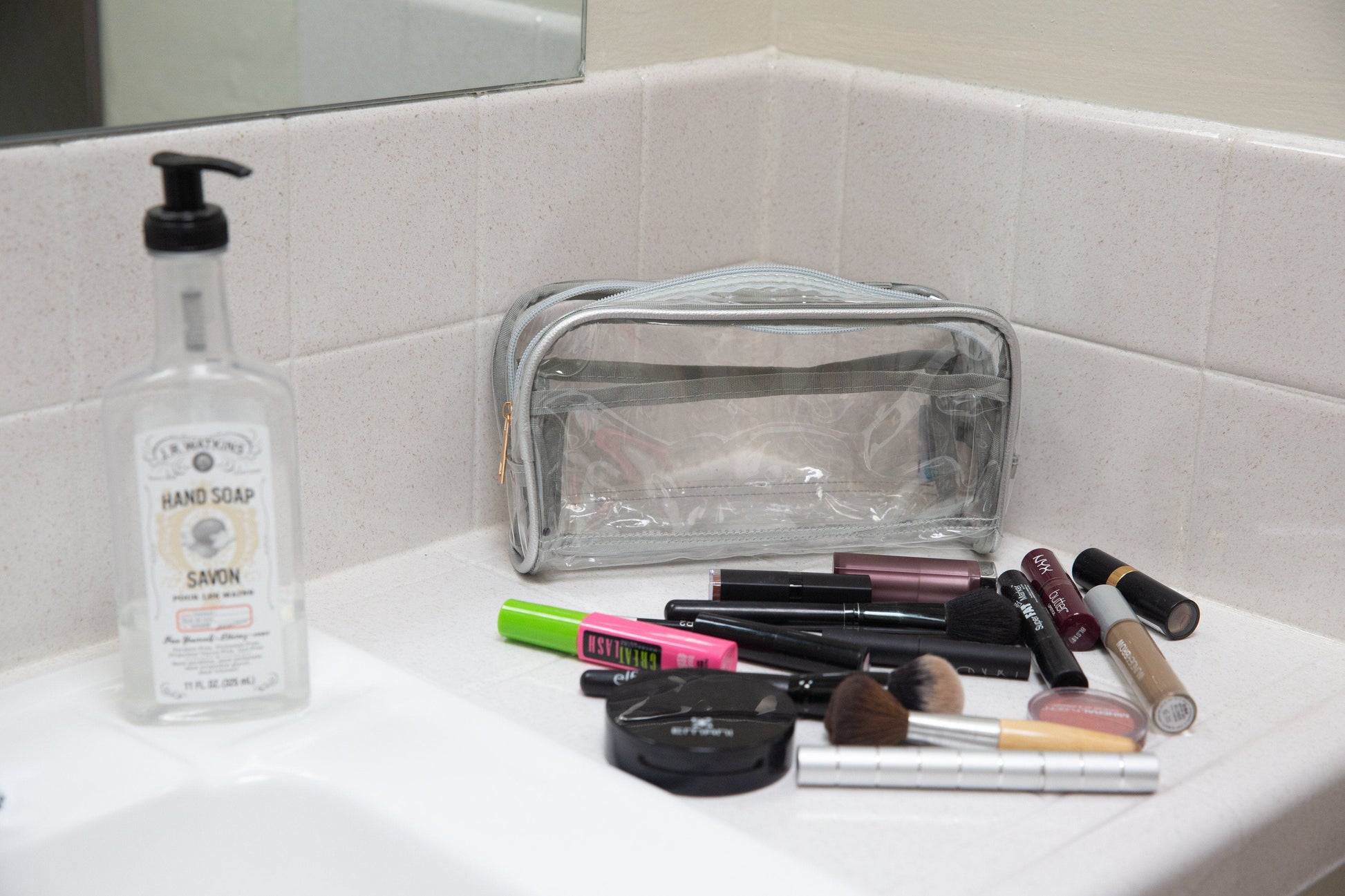 Love traveling with all your makeup favorites? Use our clear makeup bag to store your go-to makeup items for travel. No more worries about your liquid lipstick leaking into your bag or a broken powder leaving a mess behind! Easy to clean and extra pockets are a plus.