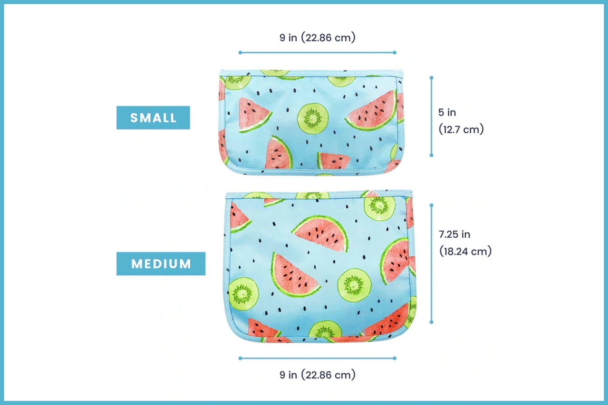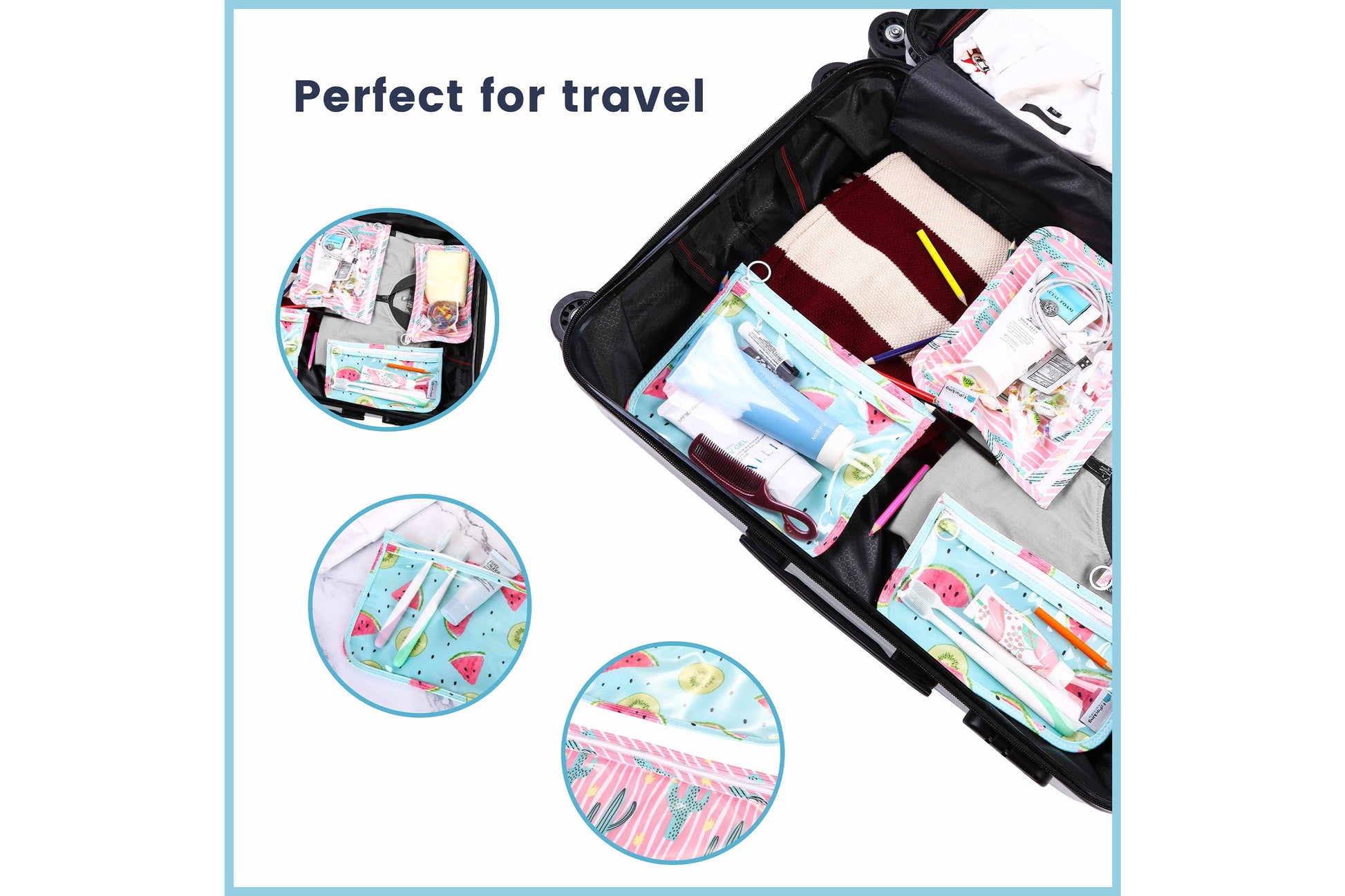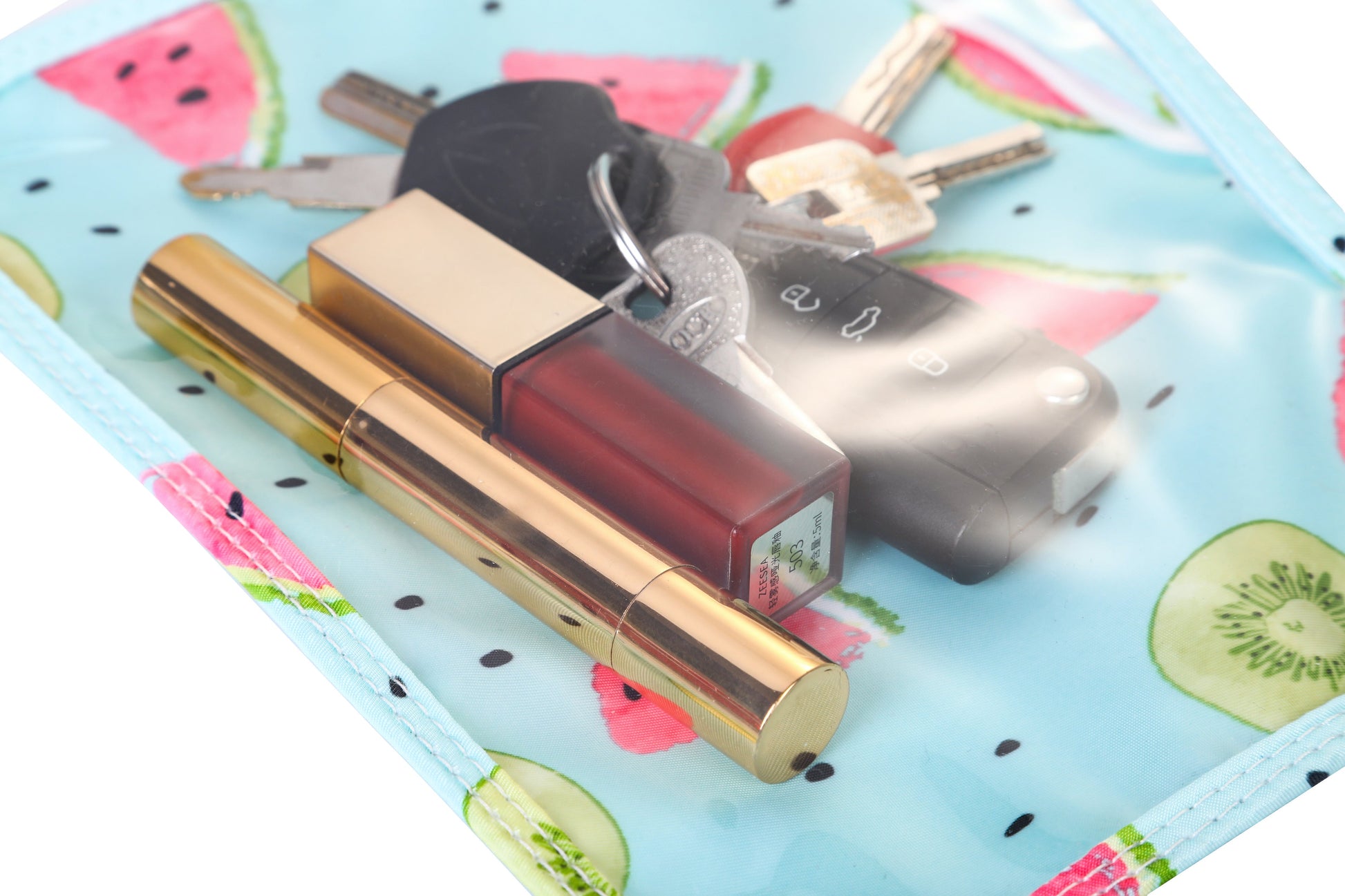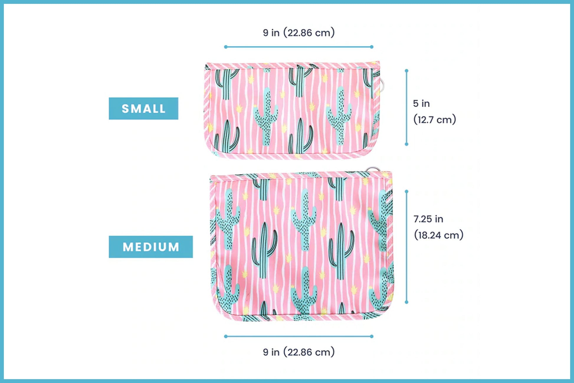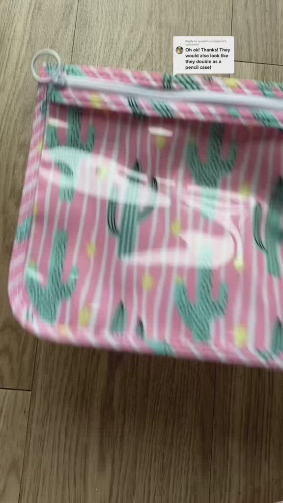 Stash your everyday essentials in style with these fun clear zipper pouches! These versatile little baggies are perfect for organizing your pens, pencils, keys, cords and more. This set of 2 includes 1 small baggie and 1 medium baggie. Just the right amount of mini pouches to keep your daily purse or diaper bag neat and tidy!