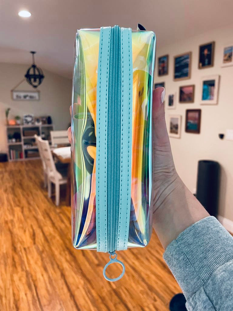 Put a little sparkle into your organizing routine with this Holographic Pouch from our rainbow collection! This organizer has a clear, iridescent design that you’ll love. Perfect for storing and transporting your everyday cosmetics!