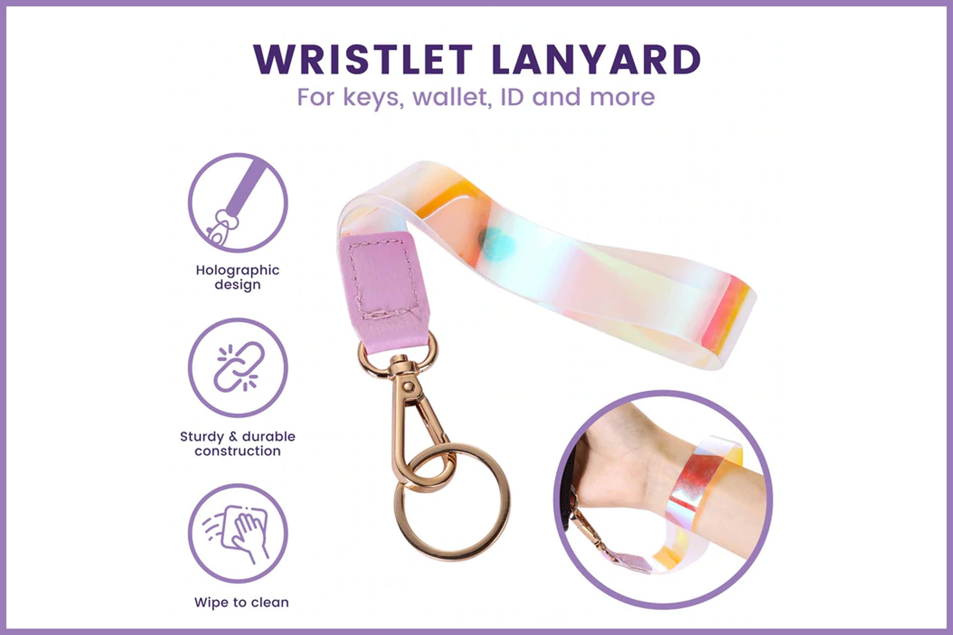 Tired of losing your keys all the time? Go hands free with our sparkly wrist lanyard for women. Attach this lanyard to your most important items, slip the strap on to your wrist and take on the day! This super cute and functional keychain strap is designed for all the girl bosses and busy moms out there.